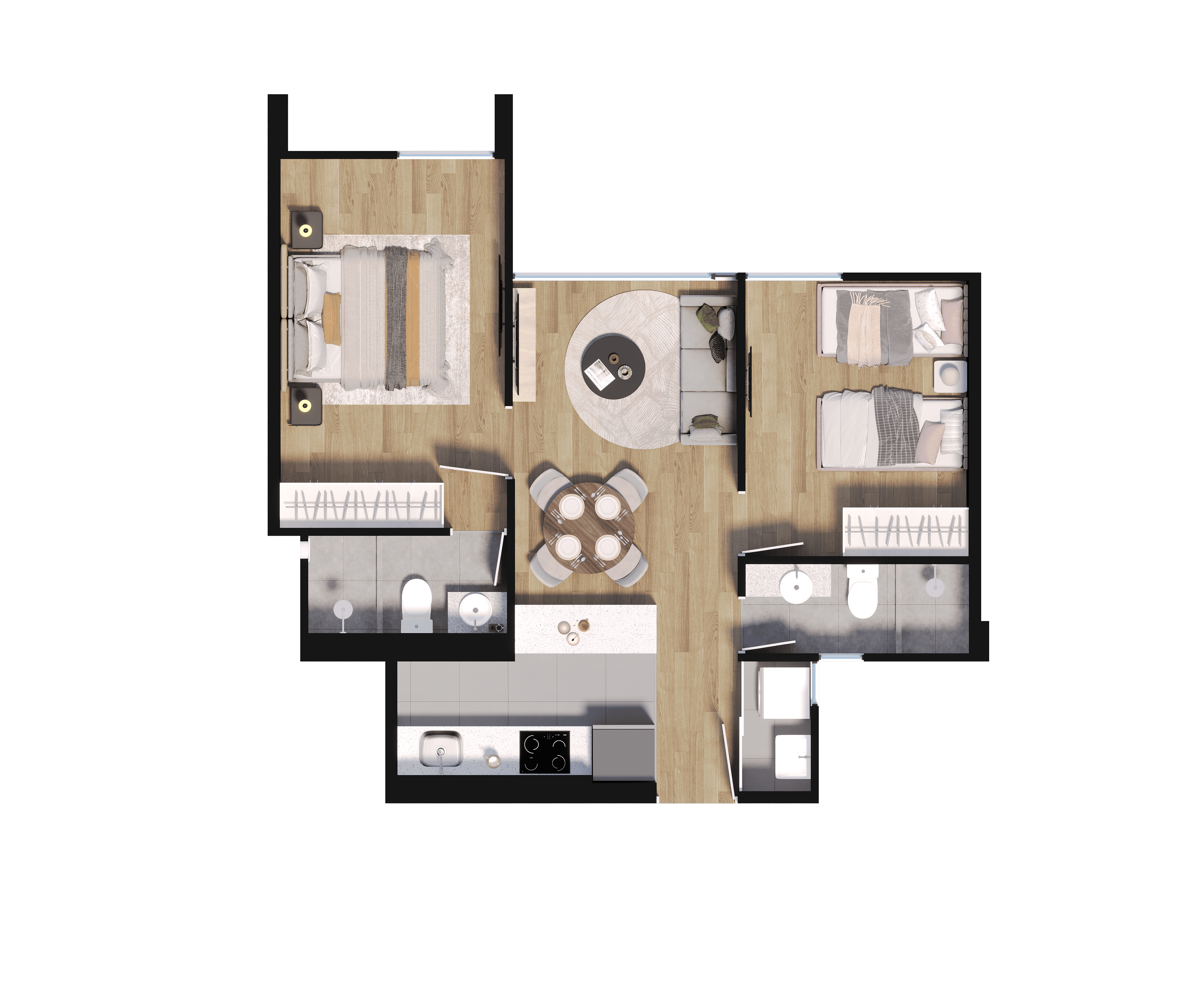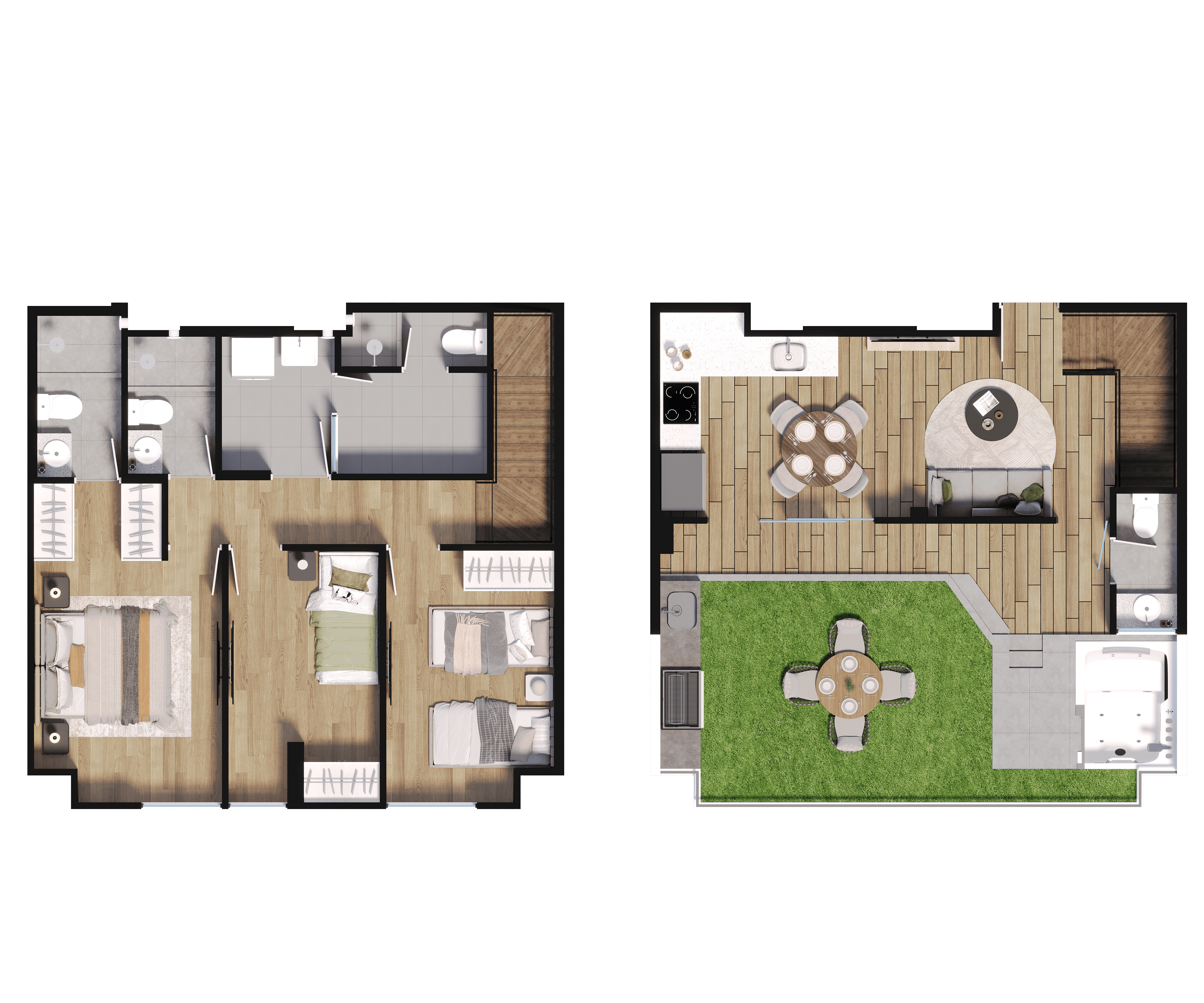 Cada espacio ha sido cuidadosamente pensado para que disfrutes al máximo de tu hogar: un lobby acogedor que te recibe cada día, un patio interior que invita a la calma y una zona crossfit ideal para desconectarte. Además, encontrarás áreas creadas para compartir momentos especiales, como la zona de parrillas, sky room y el espacio del chef.